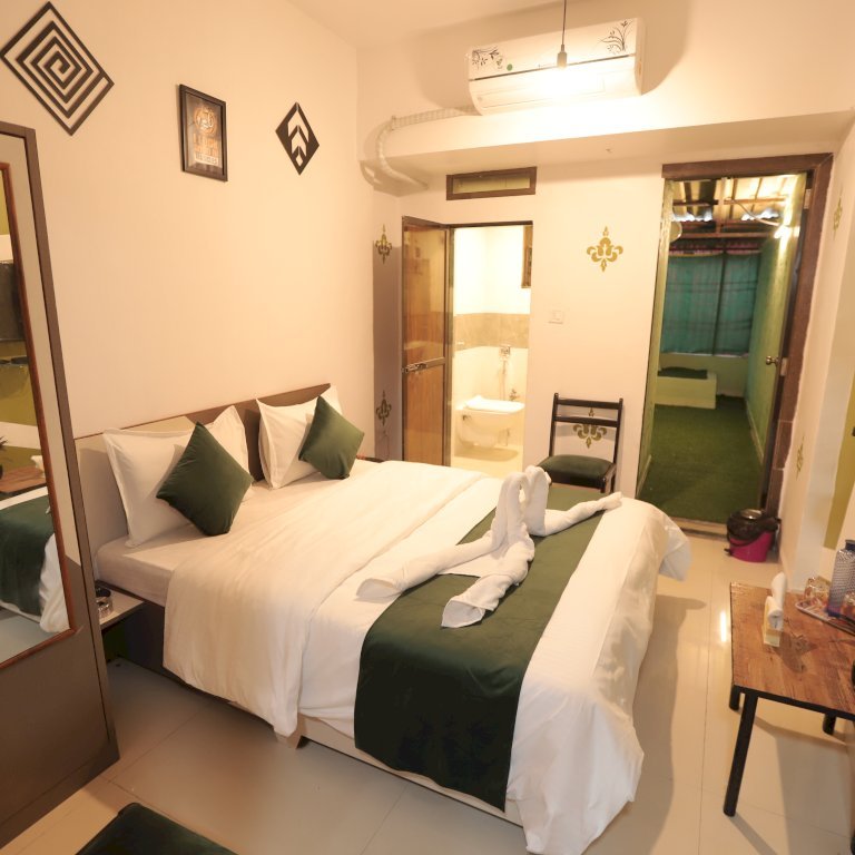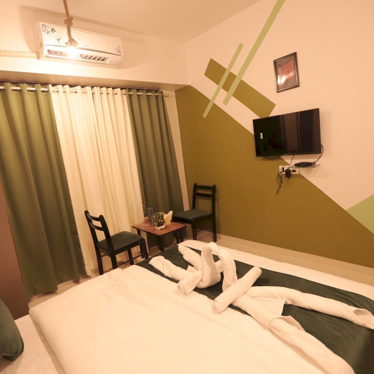 The hotel is well equipped with basic amenities like TV, Air conditioning, Geyser, Wifi, Dressing Table with Mirror, etc. You can also order food online from all food delivery apps like Zomato, Swiggy, etc at the hotel.