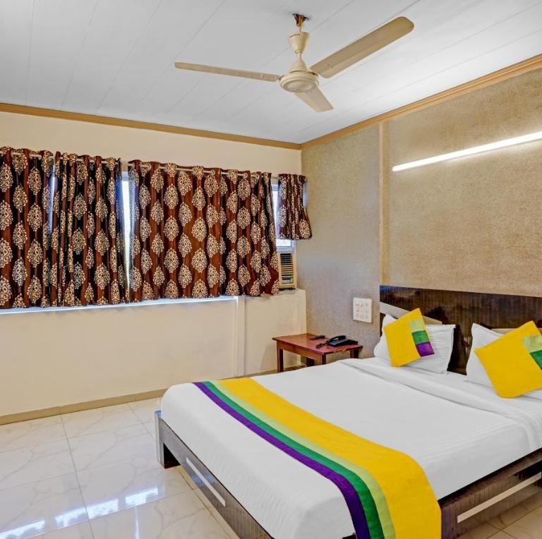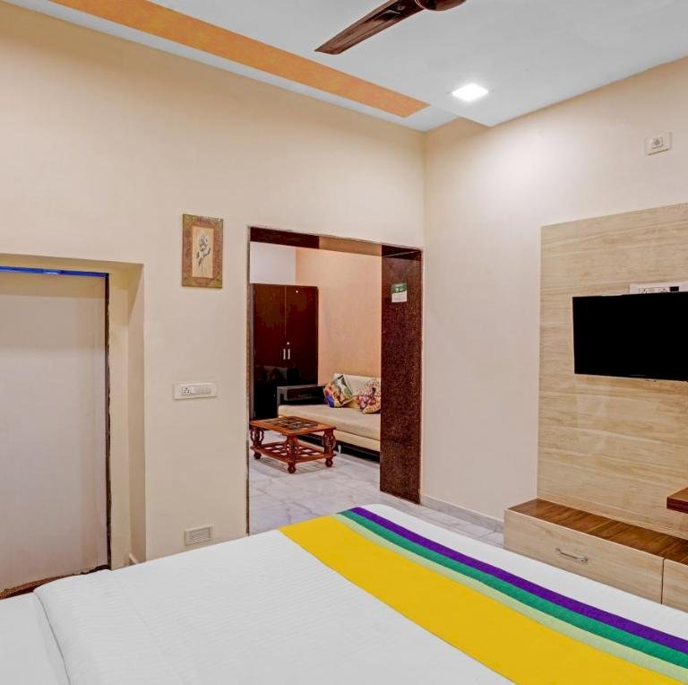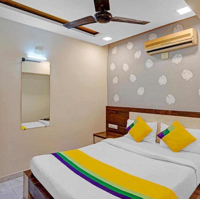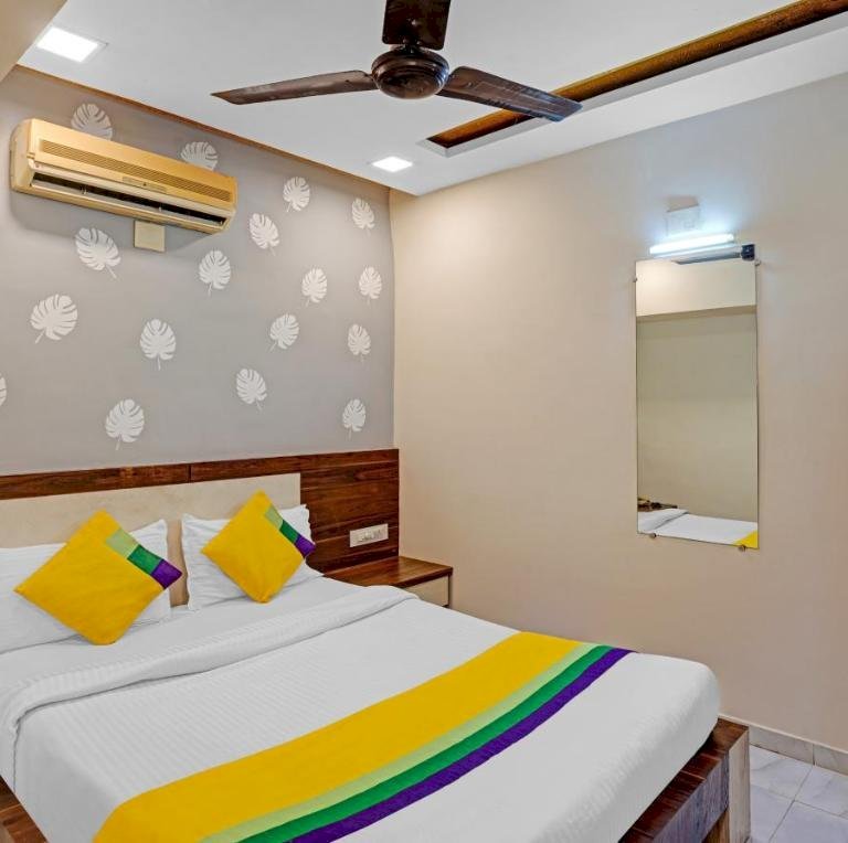 The hotel is well equipped with basic amenities like TV, Air conditioning, Geyser, Wifi, Dressing Table with Mirror, etc. You can also order food online from all food delivery apps like Zomato, Swiggy, etc at the hotel.