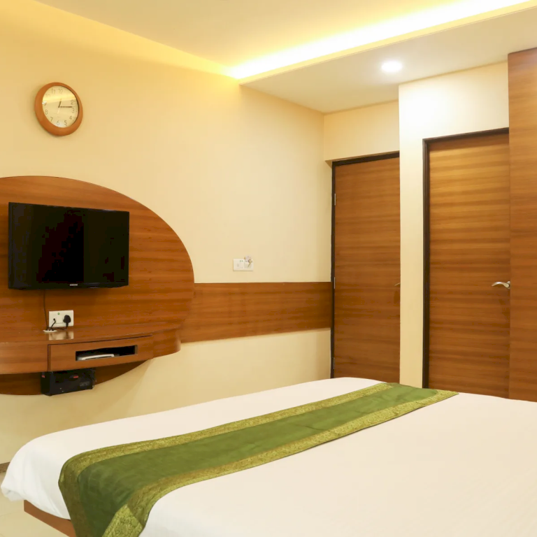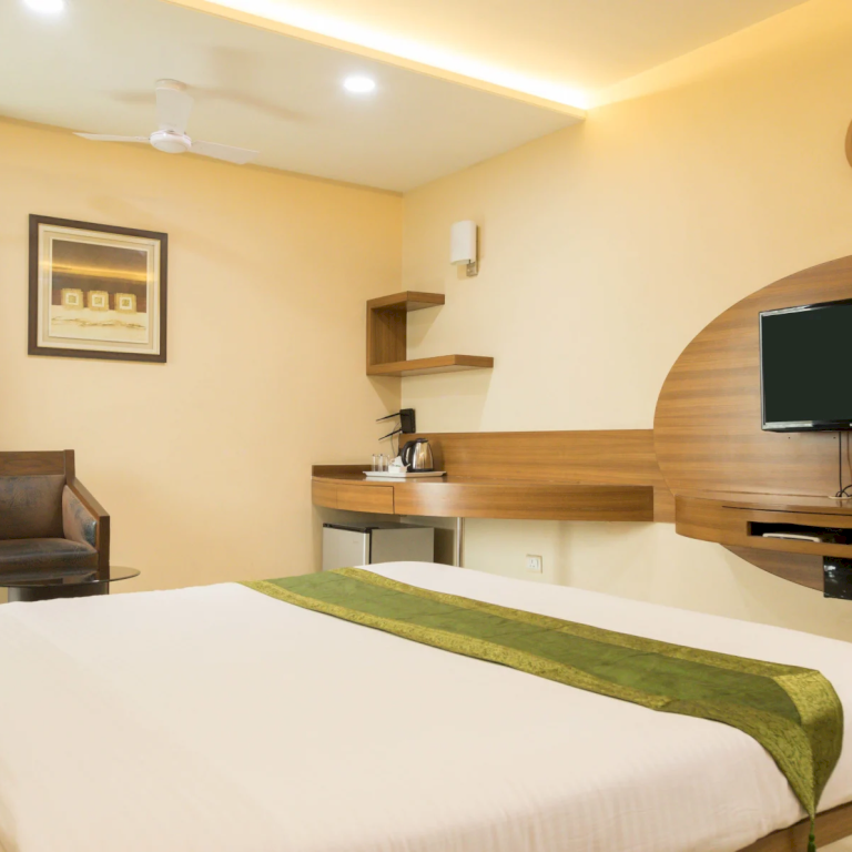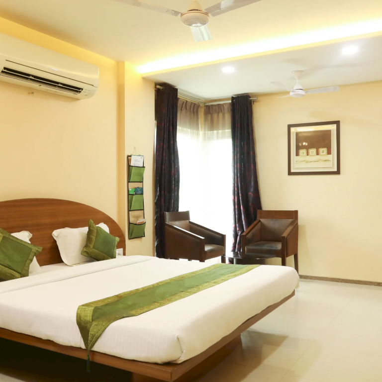 The hotel is well equipped with basic amenities like TV, Air conditioning, Geyser, Wifi, Dressing Table with Mirror, etc. You can also order food online from all food delivery apps like Zomato, Swiggy, etc at the hotel.