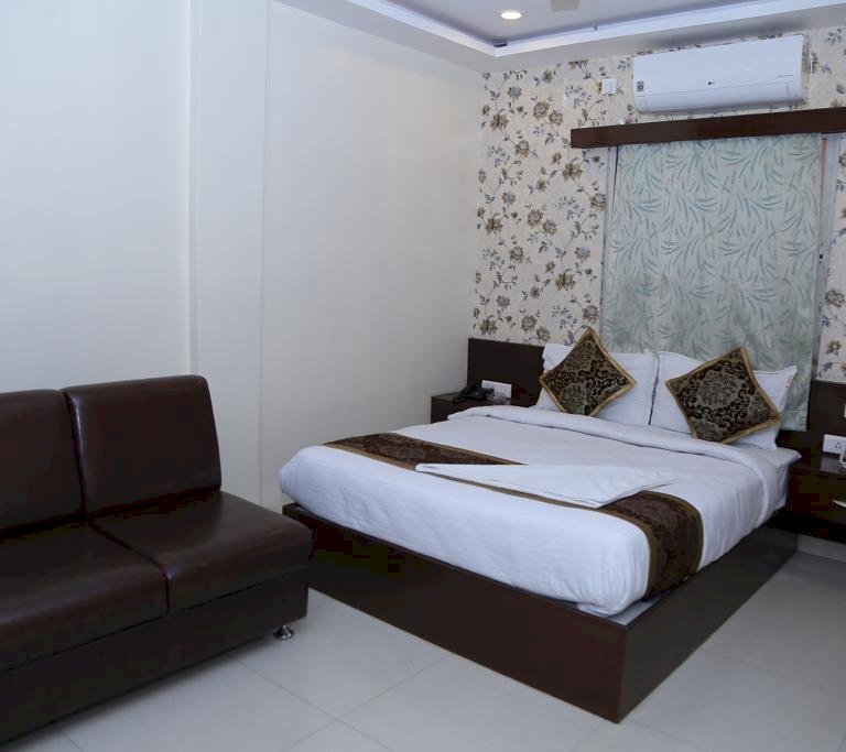 The hotel has basic amenities like TV, Air conditioning, Geyser, Wifi, Dressing Table with Mirror, etc. You can also order food online from all food delivery apps like Zomato, Swiggy, etc at the hotel