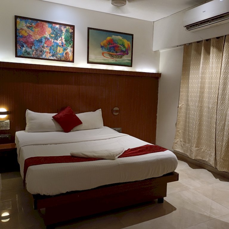 The hotel is well equipped with basic amenities like TV, Air conditioning, Geyser, Wifi, Dressing Table with Mirror, etc. You can also order food online from all food delivery apps like Zomato, Swiggy, etc at the hotel.