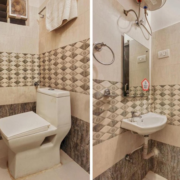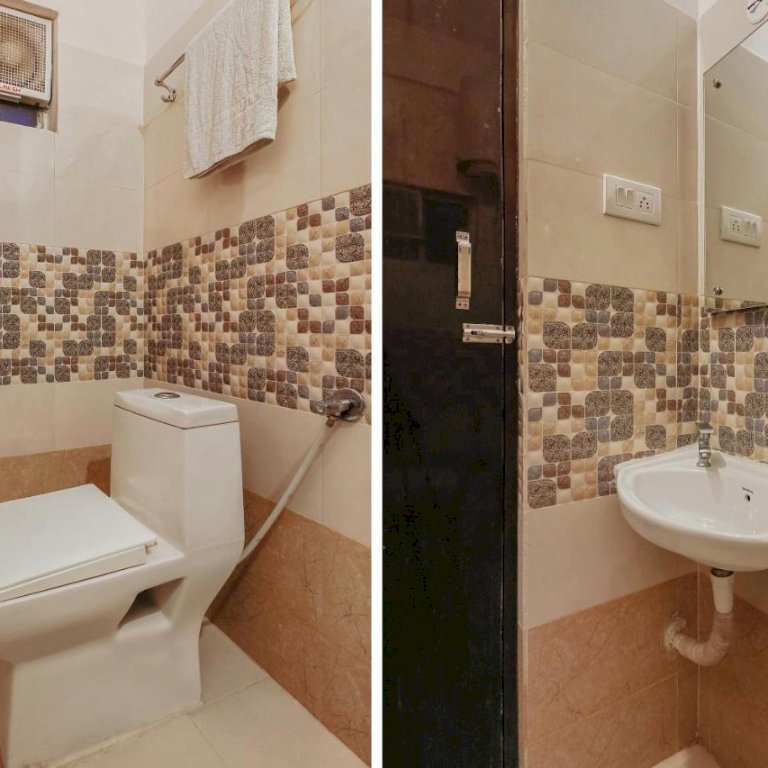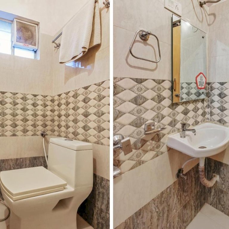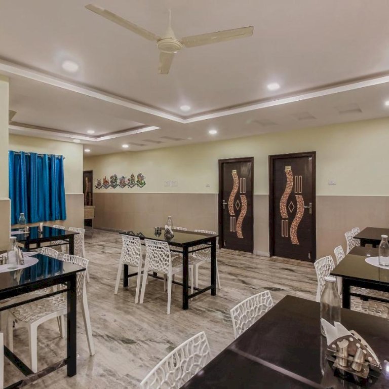 The hotel has basic amenities like TV, Air conditioning, Geyser, Wifi, Dressing Table with Mirror, etc. You can also order food online from all food delivery apps like Zomato, Swiggy, etc at the hotel