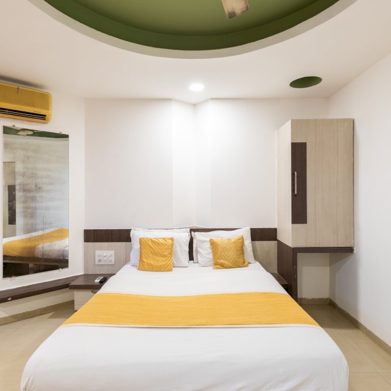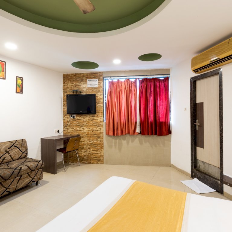 The hotel is well equipped with basic amenities like TV, Air conditioning, Geyser, Wifi, Dressing Table with Mirror, etc. You can also order food online from all food delivery apps like Zomato, Swiggy, etc at the hotel.