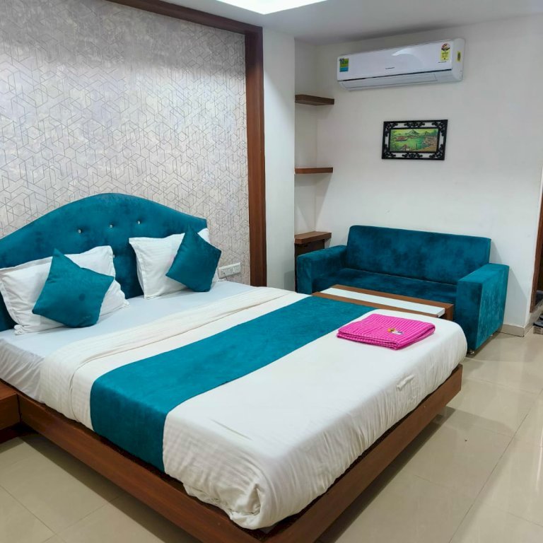 The hotel is well equipped with basic amenities like TV, Air conditioning, Geyser, Wifi, Dressing Table with Mirror, etc. You can also order food online from all food delivery apps like Zomato, Swiggy, etc at the hotel.