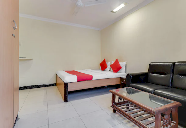The hotel is well equipped with basic amenities like TV, Air conditioning, Geyser, Wifi, Dressing Table with Mirror, etc. You can also order food online from all food delivery apps like Zomato, Swiggy, etc at the hotel.