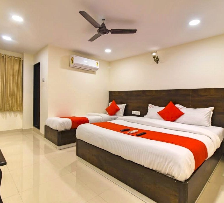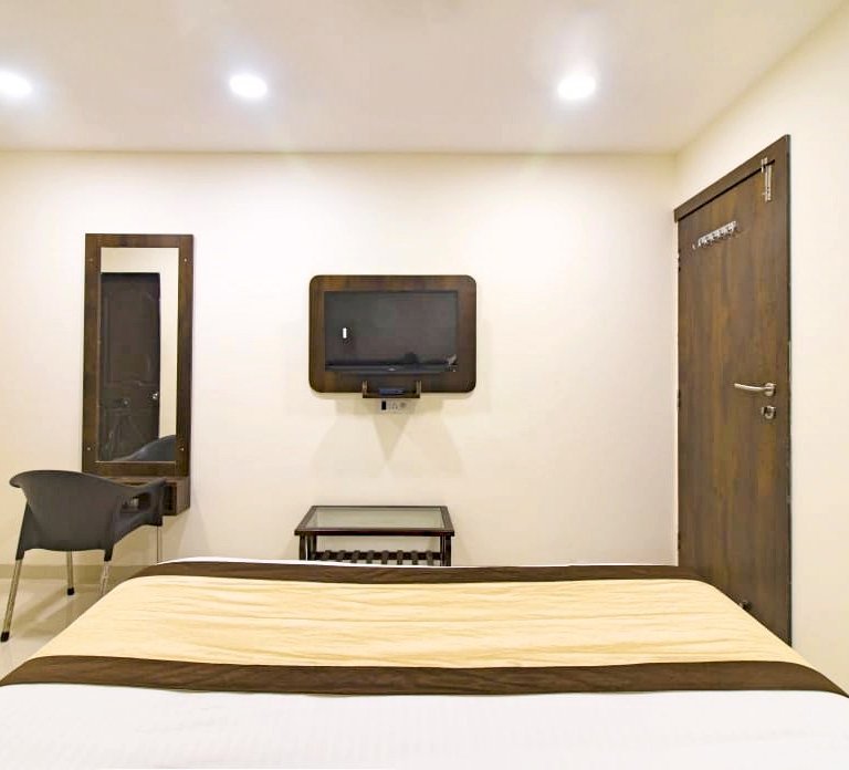 The hotel is well equipped with basic amenities like TV, Air conditioning, Geyser, Wifi, Dressing Table with Mirror, etc. You can also order food online from all food delivery apps like Zomato, Swiggy, etc at the hotel.