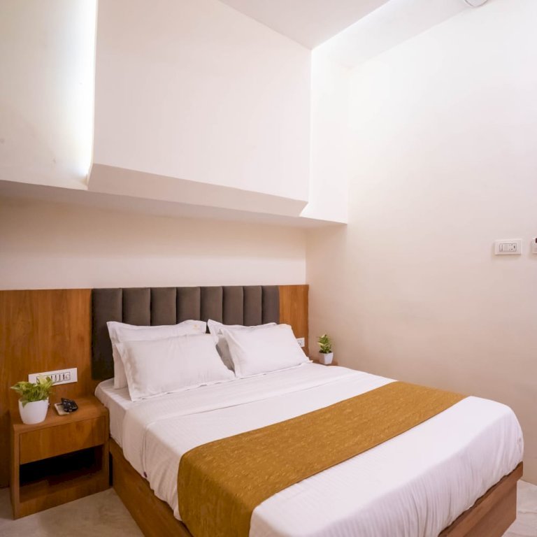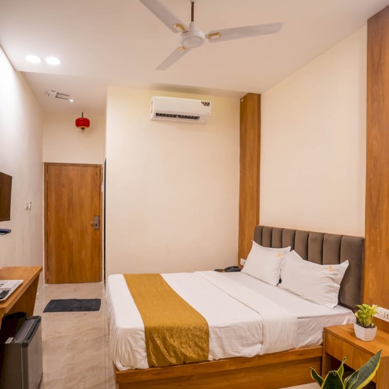 The hotel is well equipped with basic amenities like TV, Air conditioning, Geyser, Wifi, Dressing Table with Mirror, etc. You can also order food online from all food delivery apps like Zomato, Swiggy, etc at the hotel.